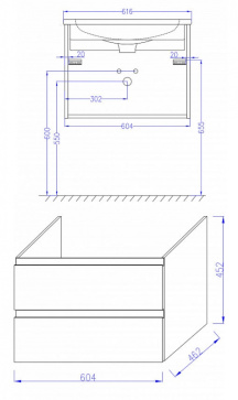Комплект AZARIO Тумба Эстима 60/2Н 595х447х850 напольная, с раковиной Астория 60, белый глянцевый (CS00094592)