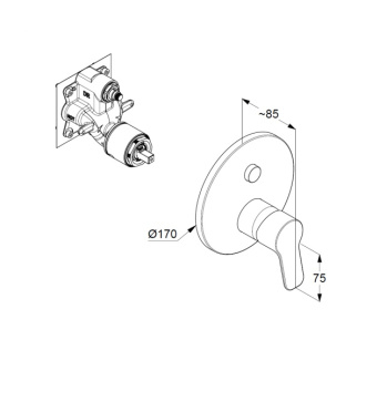 Смеситель для ванны и душа KLUDI PURE&EASY встраиваемый, внешняя часть, автоматический переключатель душ/ванна PUSH&SWITCH, хром (376590565)