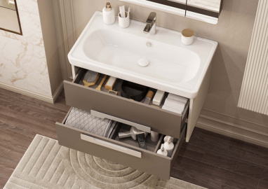 Тумба под раковину AQUATON Ар-Деко 85 подвесная, 2 ящика, кашемир (1A280401DD6E0)