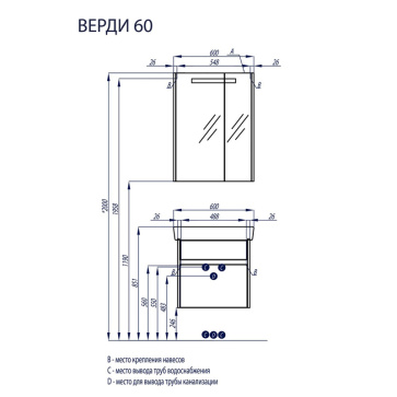 Комплект Тумба Стиль- 60/1 600х450х840 с раковиной Basic 60 (CS00070392)