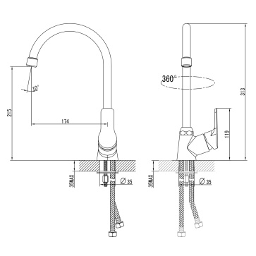 Смеситель для кухни Azario поворотный излив, керамический картридж, хром (AZ-HU245897)