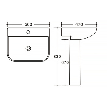 Раковина Azario SETA 560х470х830 на пьедестале, белый (AZ-5002)