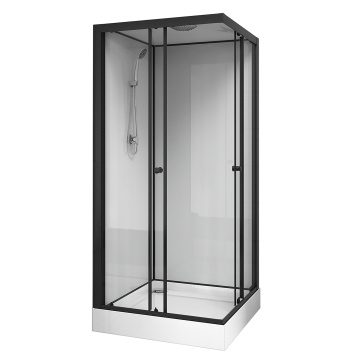 Душевая кабина Loranto NEO 90x90x(190+15) с низким поддоном 15см, прозрачное закаленное стекло 5 мм, задние стеклянные стенки белые, профиль черный-матовый (CS-22110)